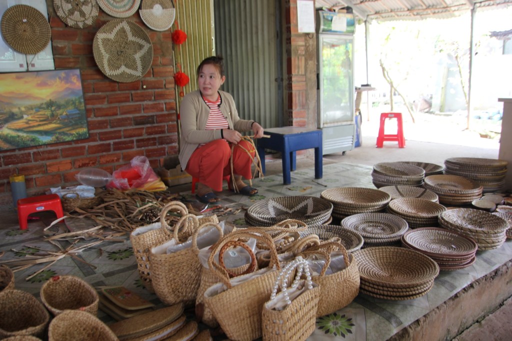 At one of our stops we watched the women turn water hyacinth stems into baskets. When fresh, the stems break easily. When dried they make strong fibres for baskets of all kinds.