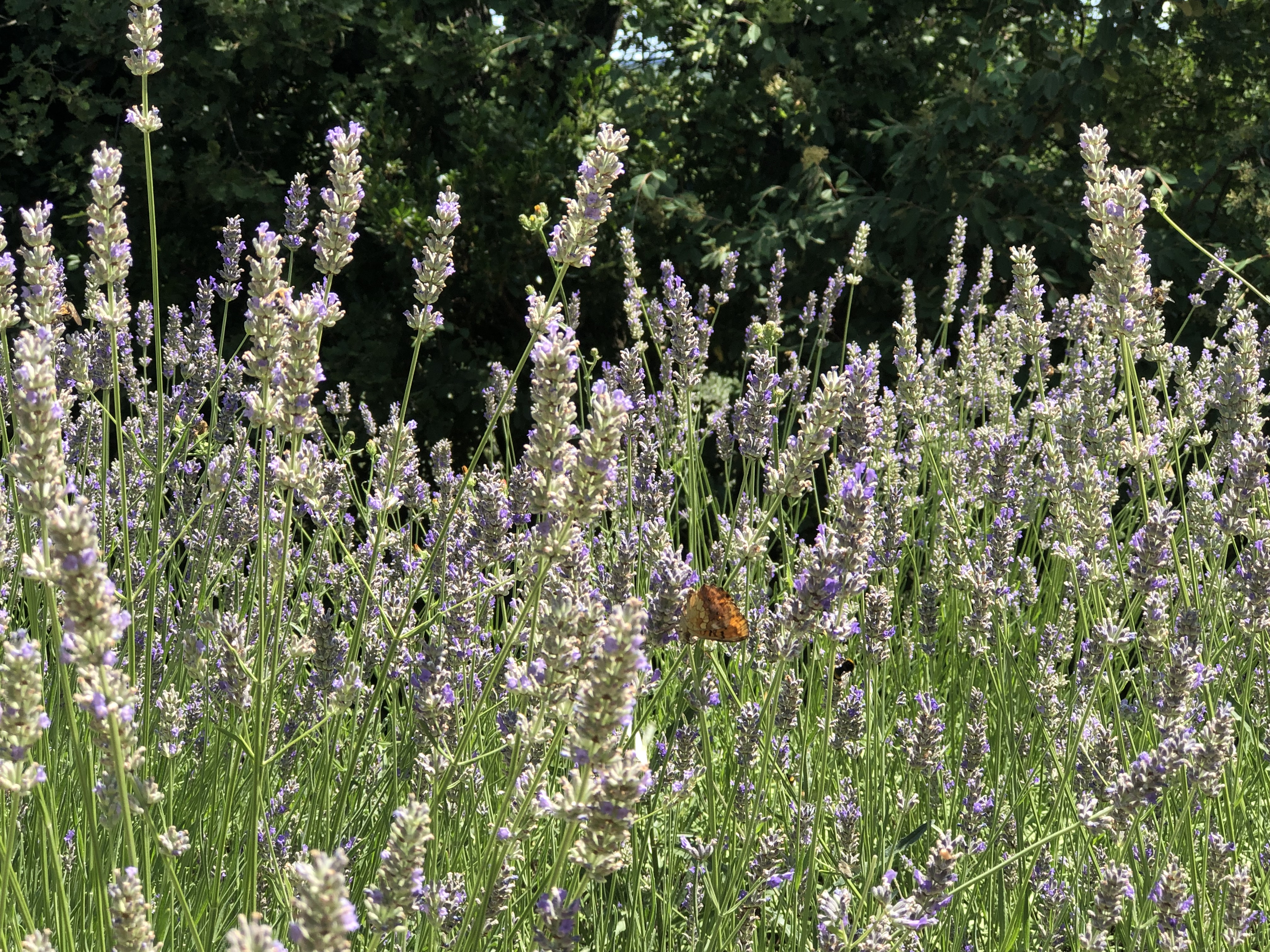 The walk away from Volpaia was through a farming community that teemed with butterflies and bees in lavender plants.