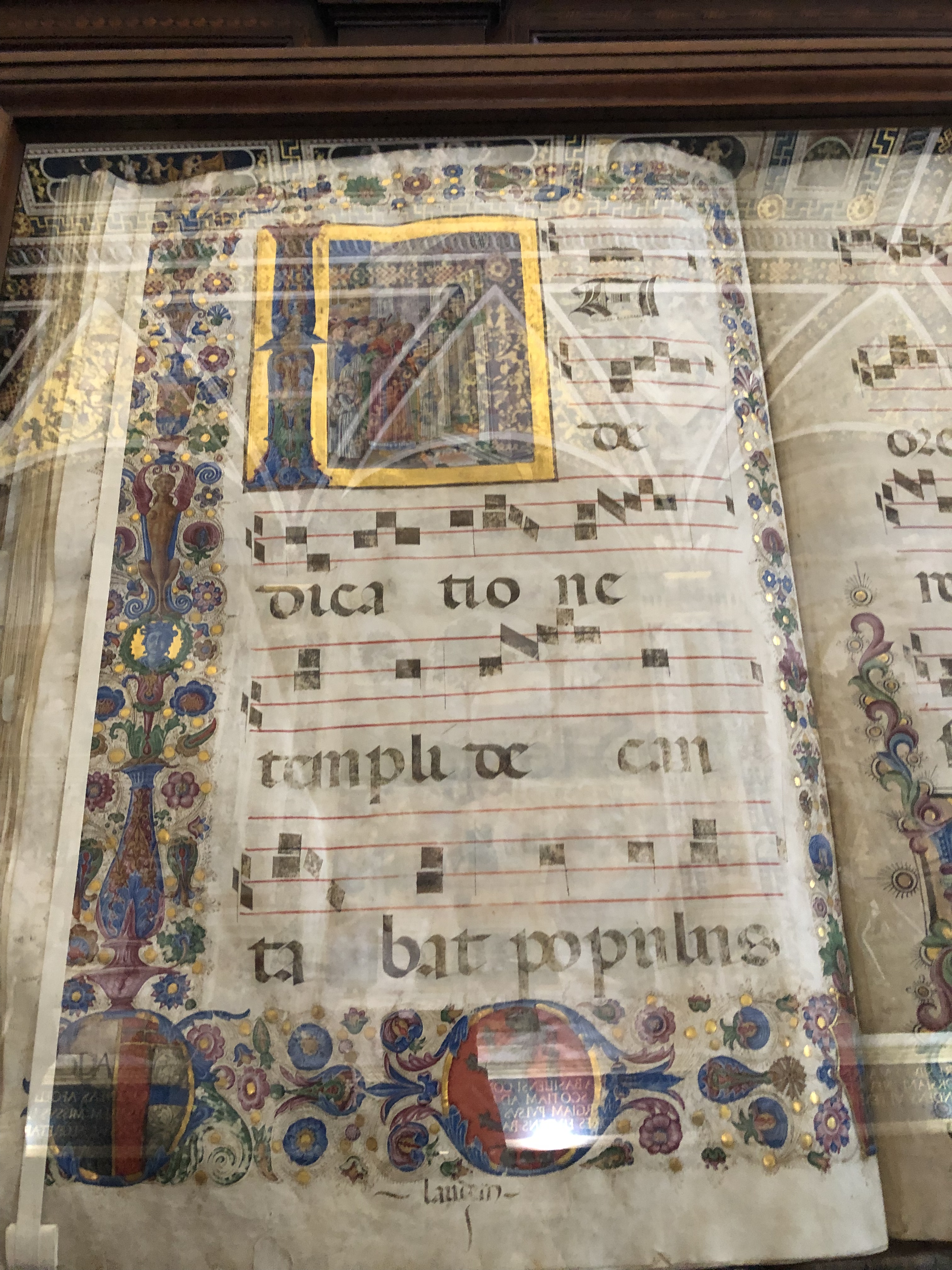 There was a fascinating library full of illuminated sacred music. The Dominican with us on our tour told us they were Gregorian chants she has sung. The colours of everything in the room were vibrant because the library was private until the 1970s.