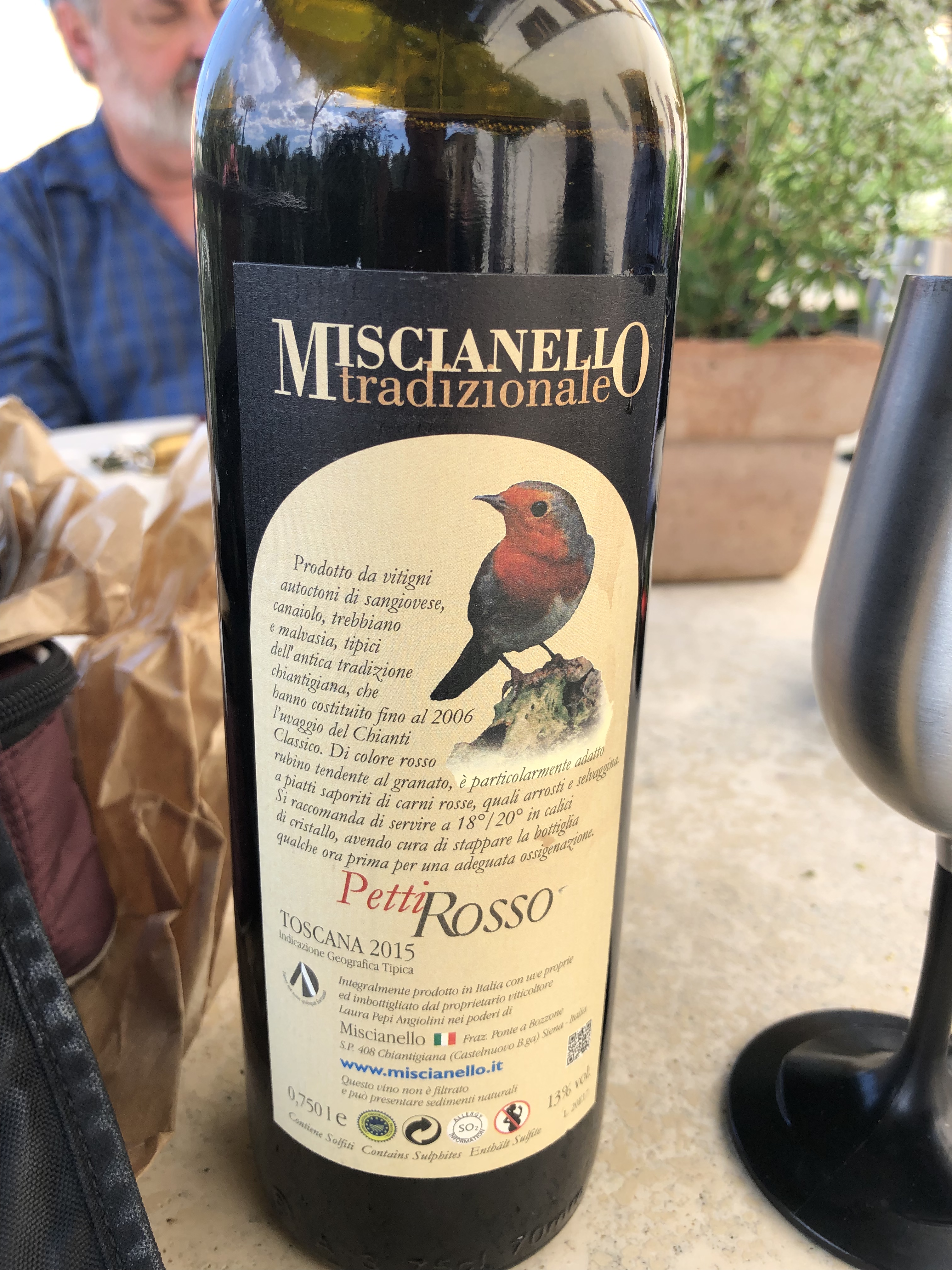 After our tour we found food, wine and the need for a rest. We headed back to the hotel and had a lovely glass of “old style” chianti. One rule change in recent times is that no chianti Classico can include white wine. The old style wine was nice sipping on our patio and had a slight fizz to it.