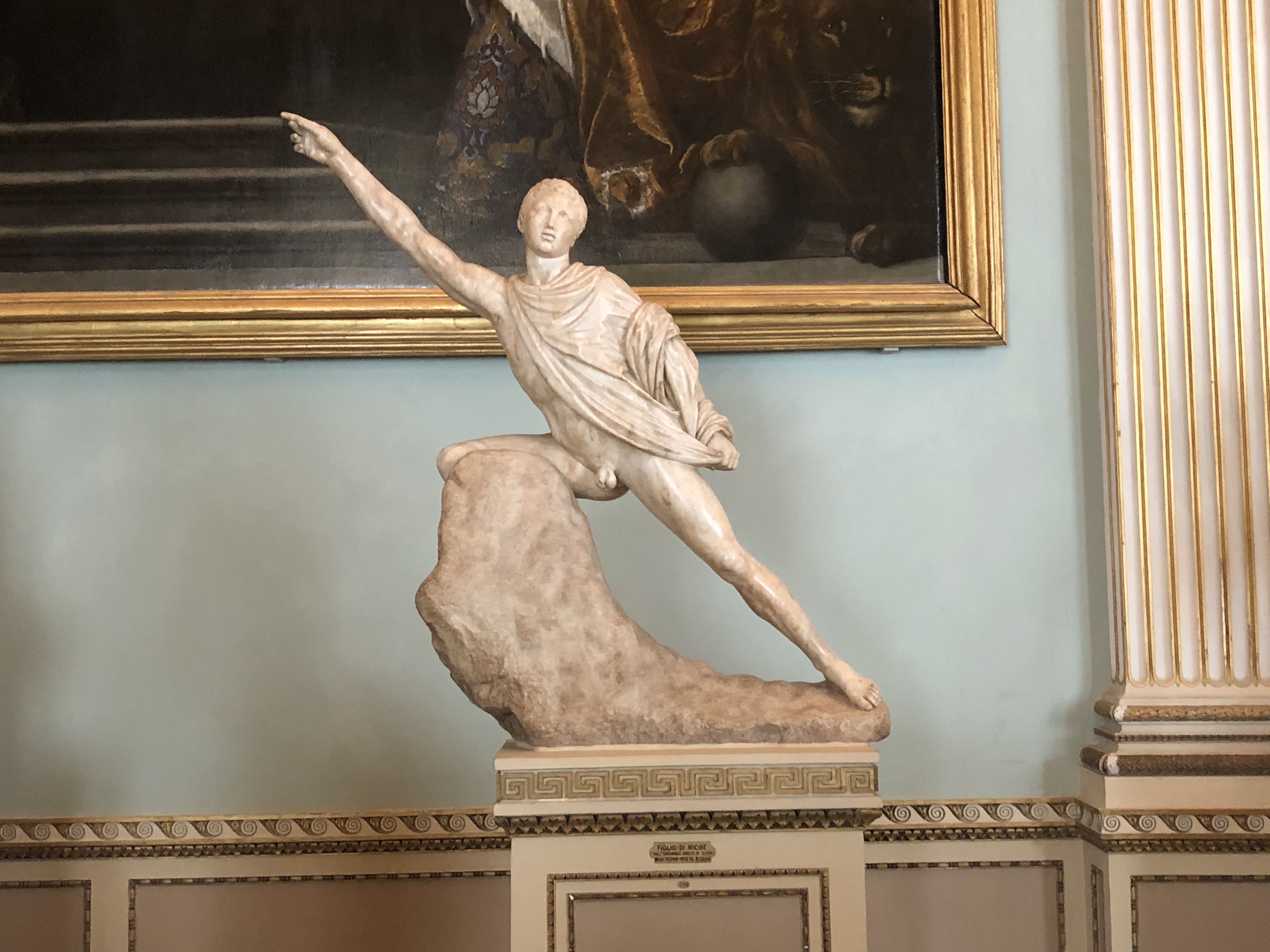 The walls and ceilings were covered in paintings. The rooms were richly decorated and there was a lot to see. There was also a great number of statues. This one was original to the entrance to the Boboli Gardens and has recently been restored.