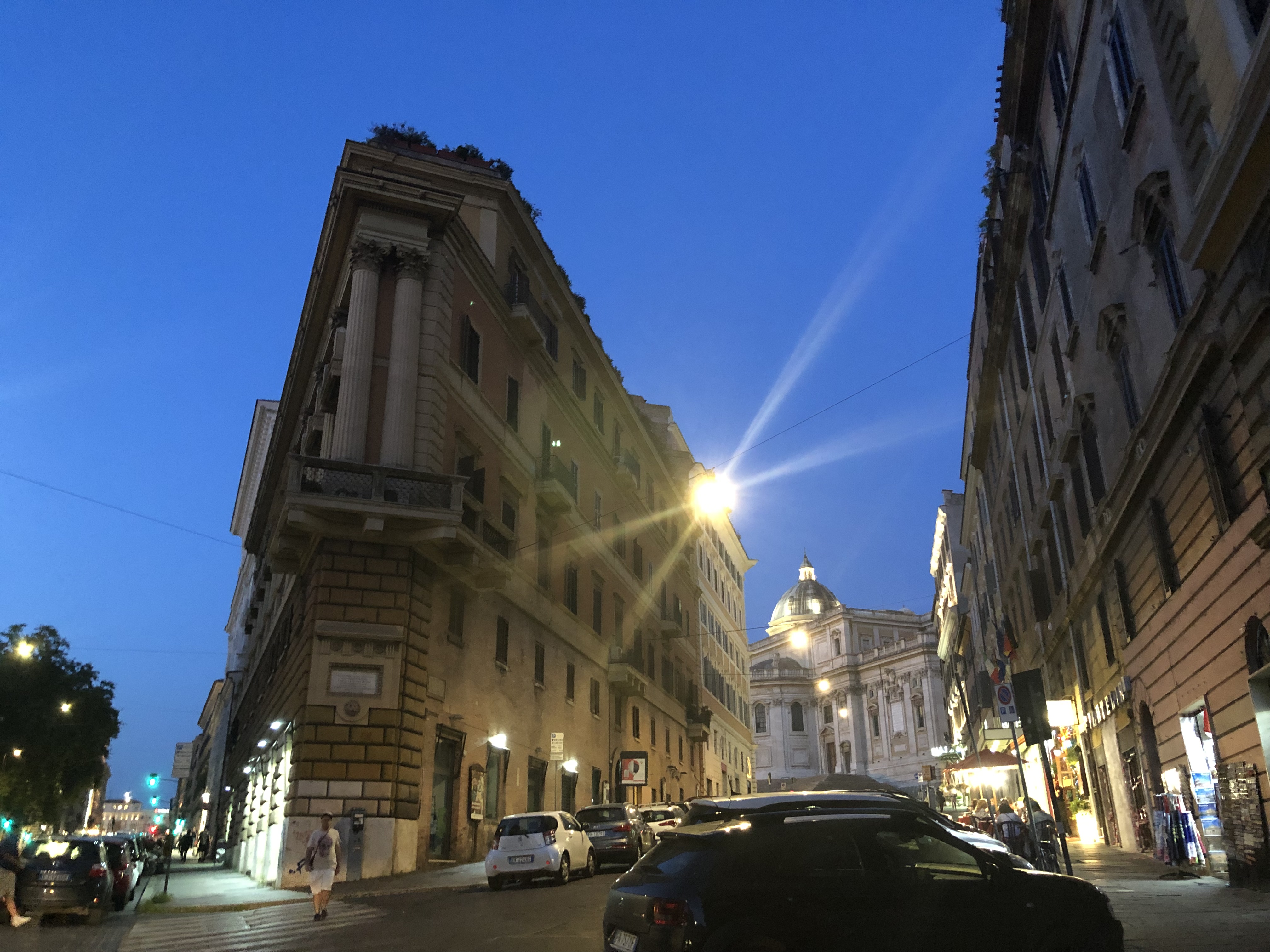 Our next step was to figure out how to get to the actual conference the next day. We learned that a bus that stopped just near our apartment would take us, non-stop, to the university in 20 minutes. That was a bonus. We met up with Archie and Kim for dinner and found a delightful little restaurant on Urbana street. Our landlady left us a who list of restaurant recommendations and we were happy to take her up on them. We looked out of our window as we turned in for the night. We could see the Basilica Santa Maria Maggiore to one side and heard the stereotypical sounds of an Italian accordion player rising from the street below.