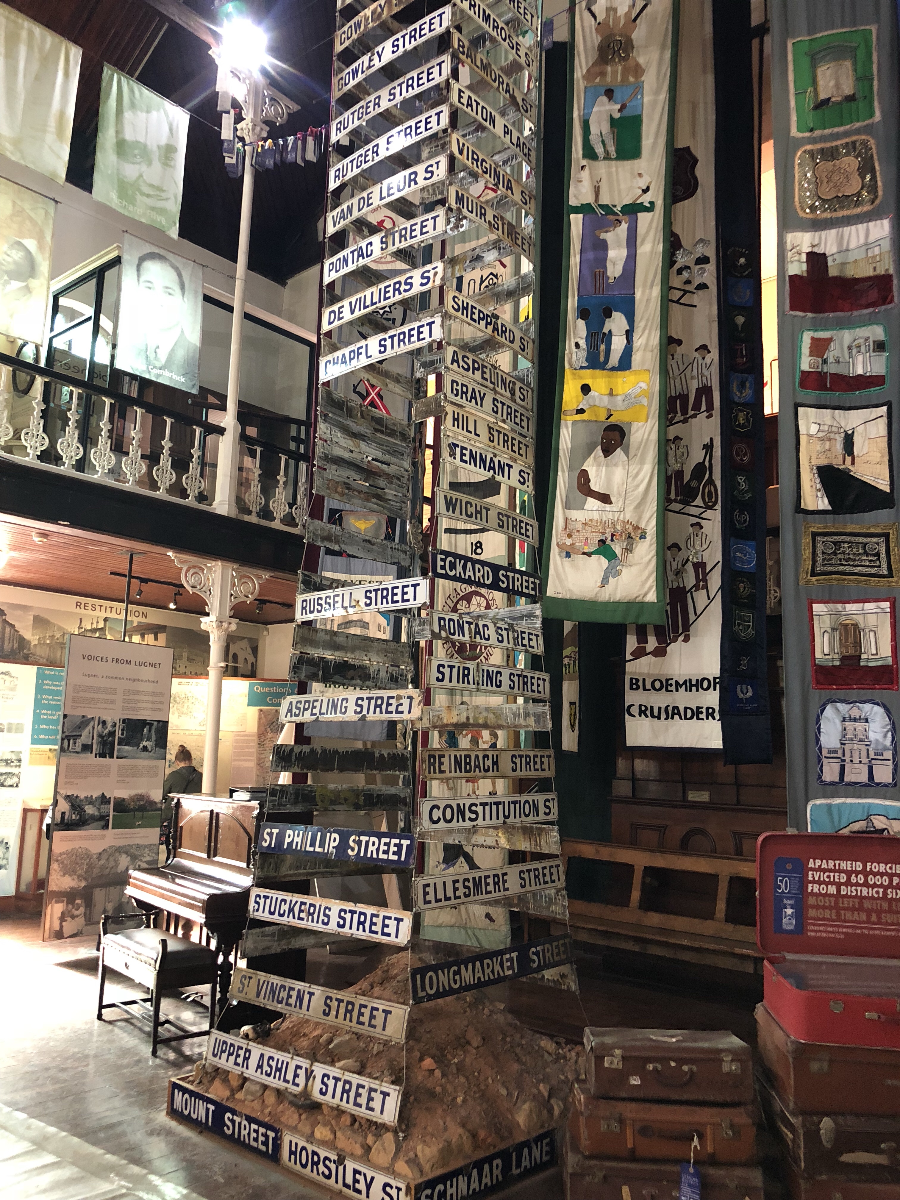 This museum detailed the forced eviction of the Black and Coloured people from District Six, a part of Cape Town. The local government forced the evacuation of thousands of people, declared the land they lived on as “white only” and then bulldozed their homes. It stuck me that this occurred in 1966, when I was 5. The parallels with what happened in Canada with Indigenous people were striking. It was a brutal but powerful museum. It told the story of the forced resettlement from the perspective of the resettled people and focused on how their lives changed with the stroke of a white man’s pen. They made this sculpture out of the street signs from the demolished areas