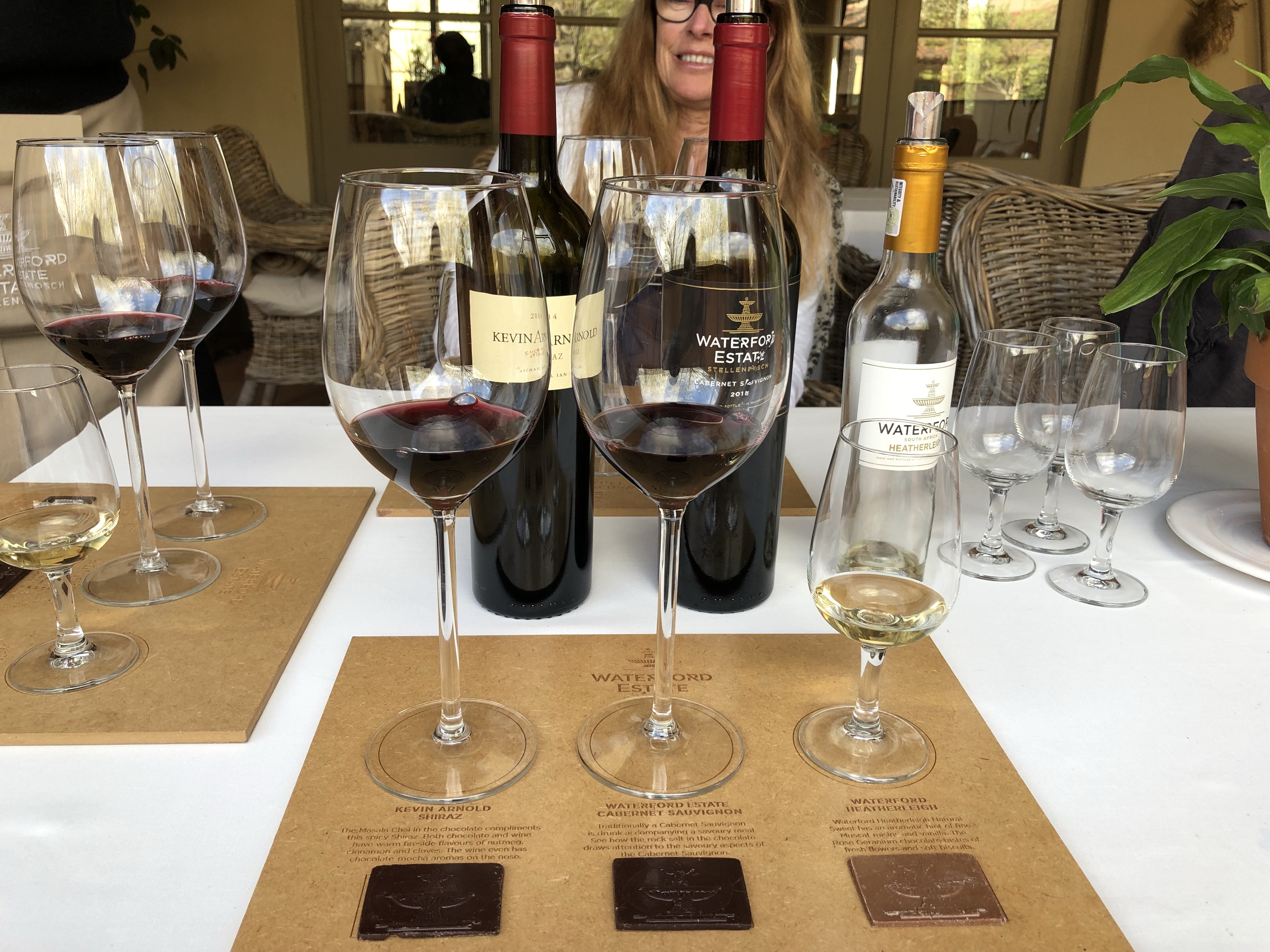 It came complete with live goats outside. Our third stop was the Rickety Bridge vineyard where we had lunch. The vineyard was one of the older ones around and was very good. Our final stop was a new vineyard, just 20 years old where we had a wine and chocolate pairing.